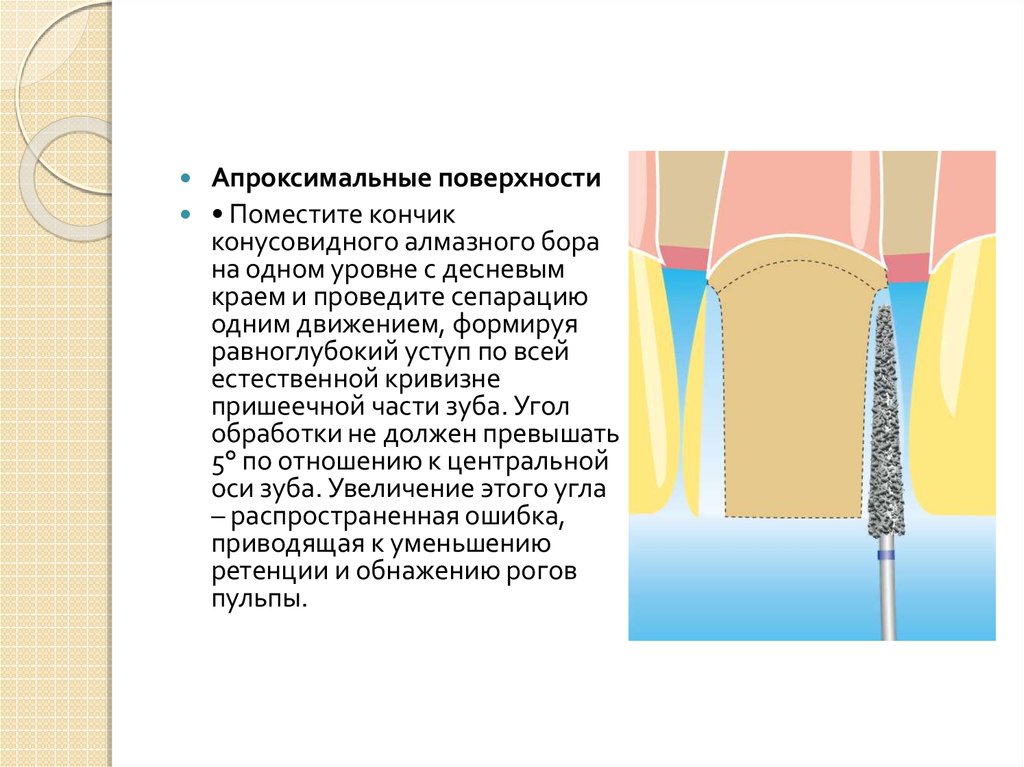 Апроксимальные поверхности• Поместите кончик