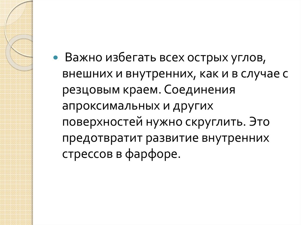 Важно избегать всех острых углов,внешних и внутренних, как и в случае с