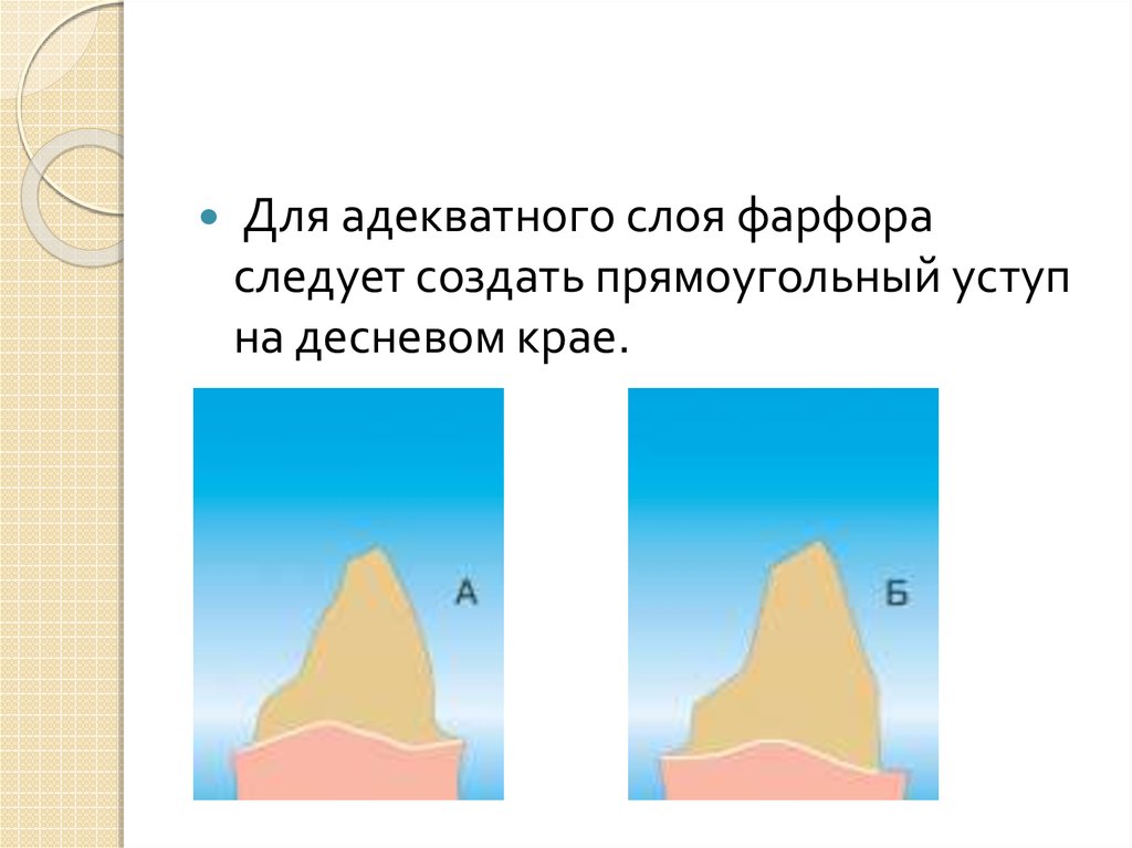 Для адекватного слоя фарфораследует создать прямоугольный уступ