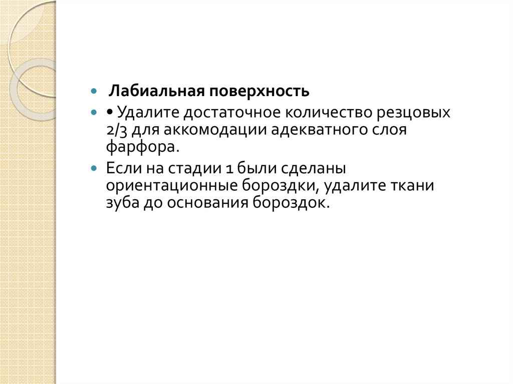 Лабиальная поверхность• Удалите достаточное количество резцовых