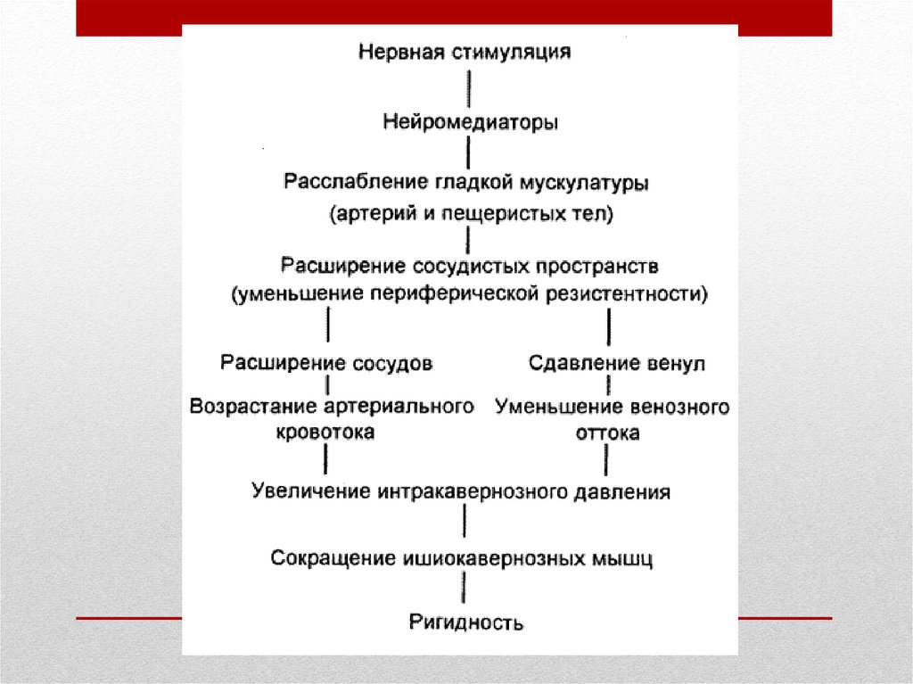 • Механизм эрекции состоит в том, что нервные импульсы,