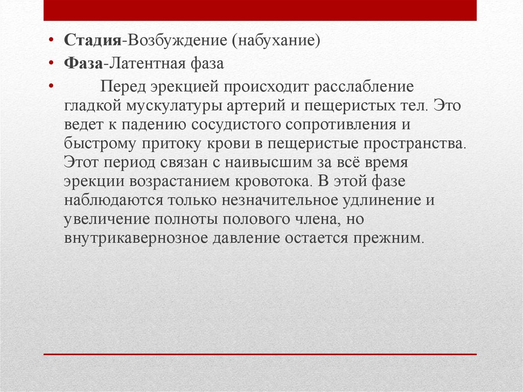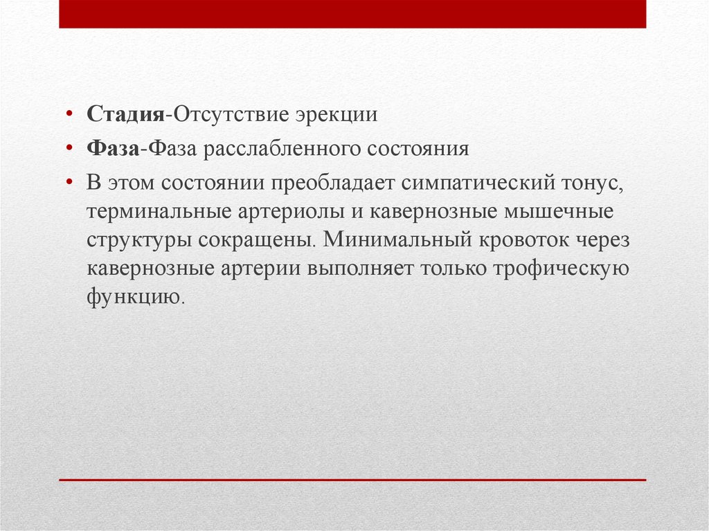 • Стадия-Отсутствие эрекции• Фаза-Фаза расслабленного состояния
