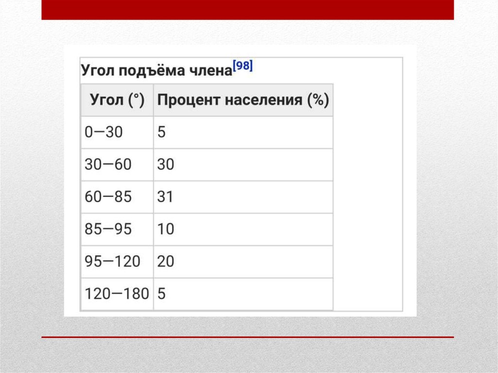 тяжелым пенисом, его угол подъёма, как правило, не будет превышать 90