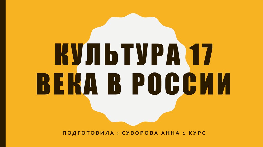 КУЛЬТУРА 17ВЕКА В РОССИИ