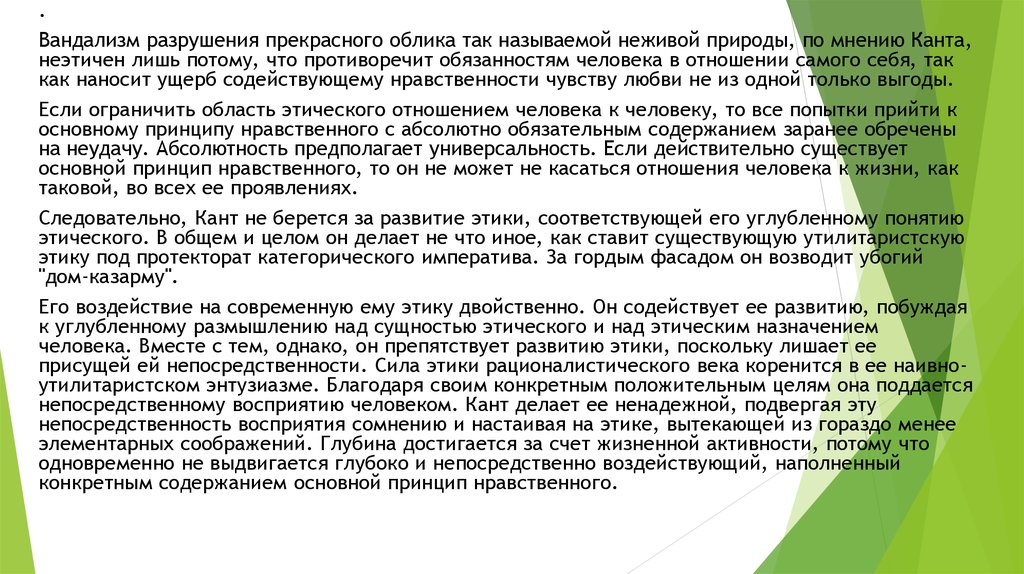 .Вандализм разрушения прекрасного облика так называемой неживой природы, по мнению Канта,