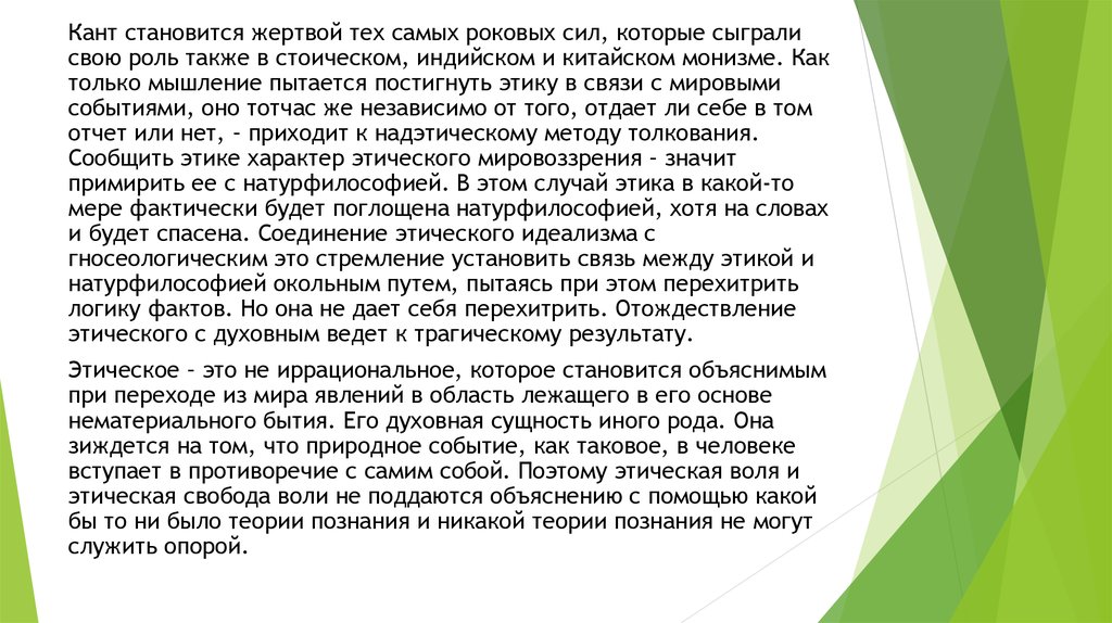Кант становится жертвой тех самых роковых сил, которые сыгралисвою роль также в стоическом, индийском и китайском монизме. Как
