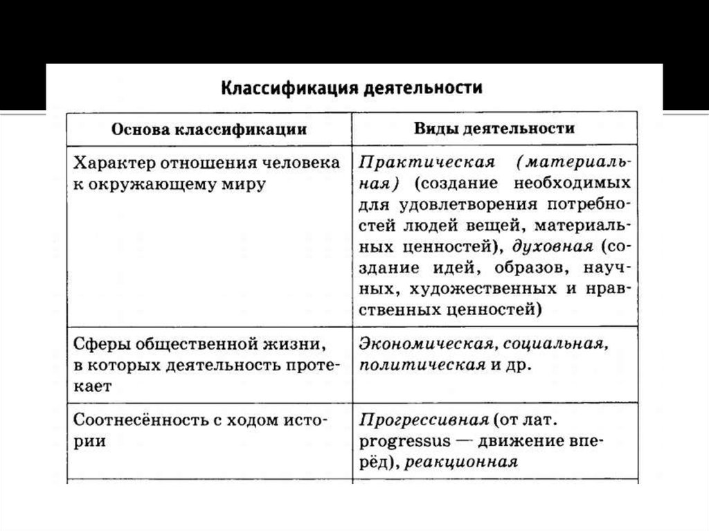 Деятельность человека и её основные виды