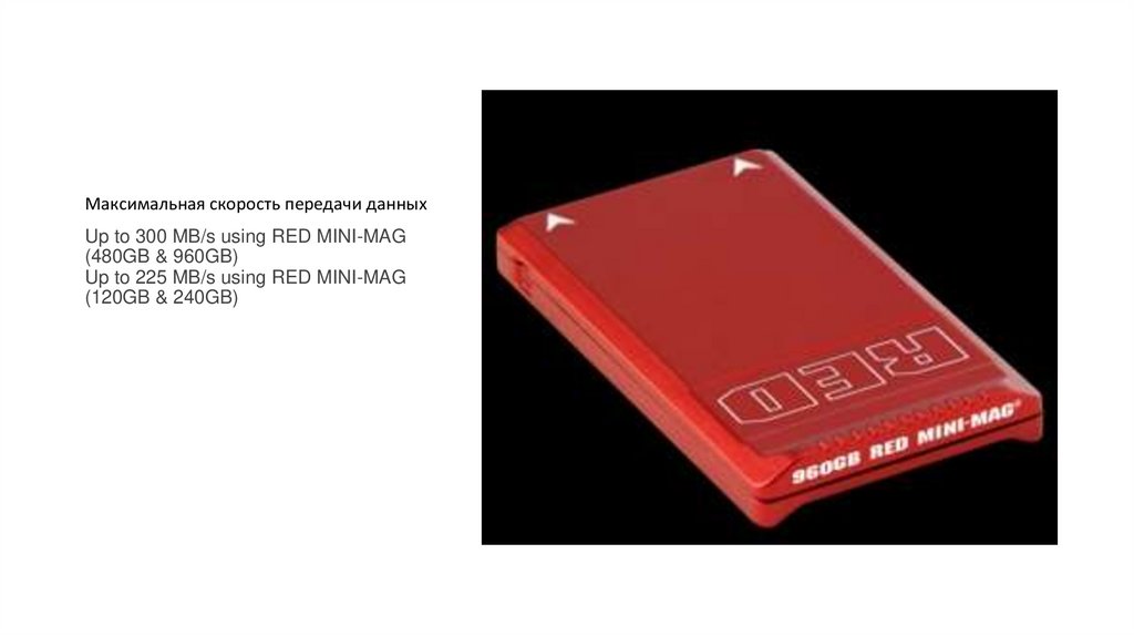 Максимальная скорость передачи данныхUp to 300 MB/s using RED MINI-MAG