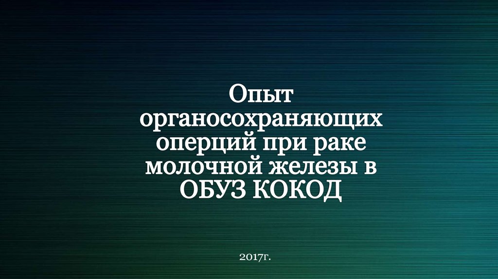 1. Опыт органосохраняющих оперций при раке молочной железы в ОБУЗ КОКОД