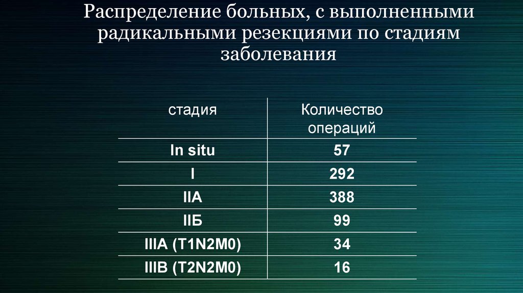 Распределение больных, с выполненнымирадикальными резекциями по стадиям