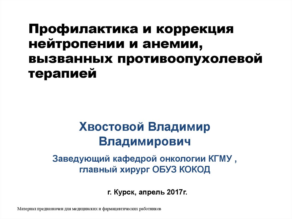 Профилактика и коррекция нейтропении и анемии, вызванных противоопухолевой терапией
