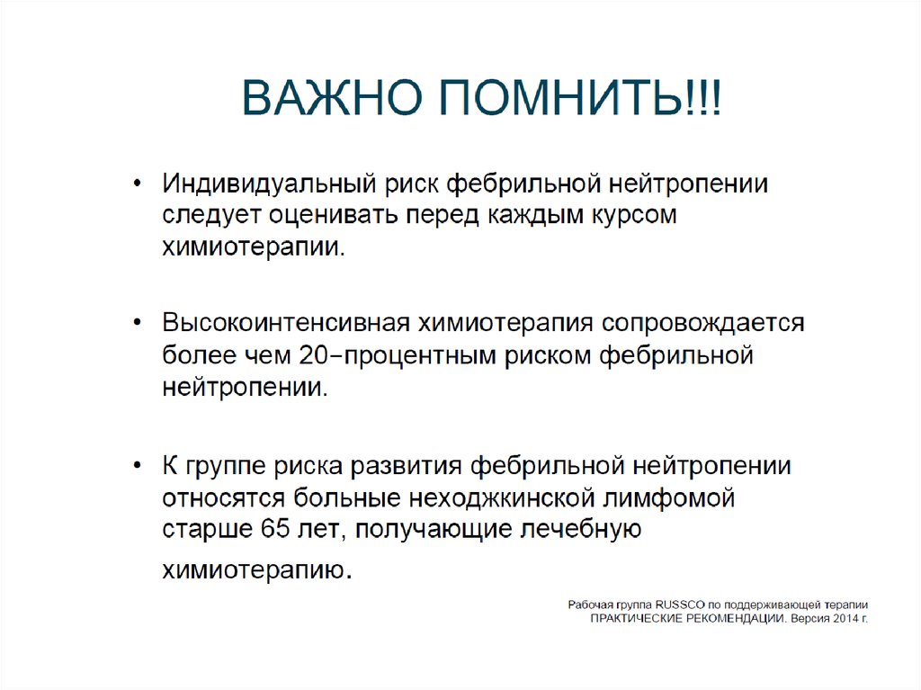 профилактики развития фебрильной нейтропении у онкологических больных. Снеговой АВ и др.