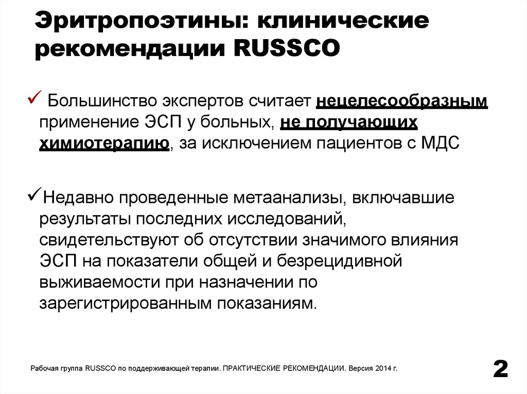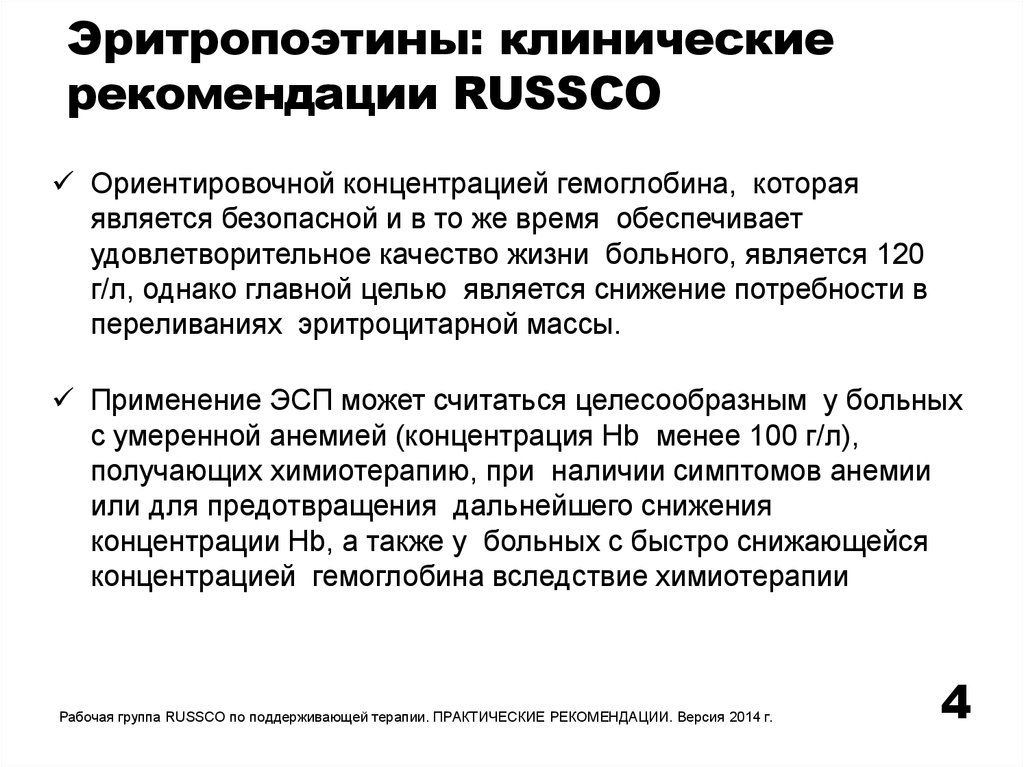 Эритропоэтины: клиническиерекомендации RUSSCO