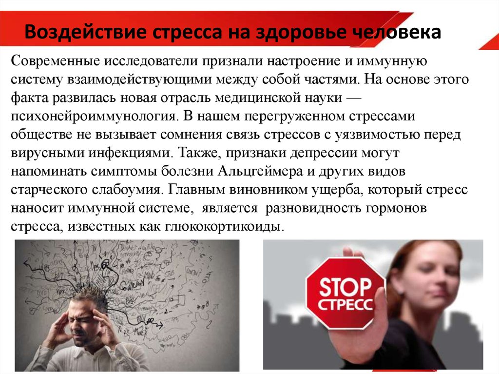 Воздействие стресса на здоровье человекаСовременные исследователи признали настроение и иммунную