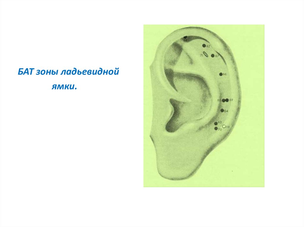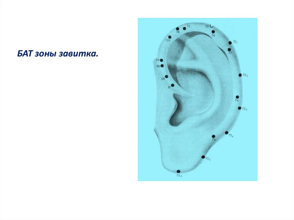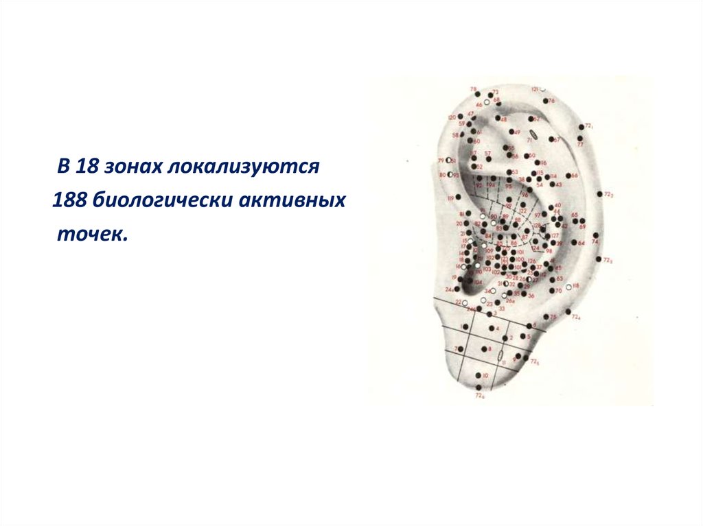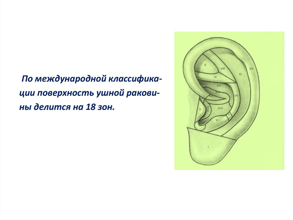 По международной классификации поверхность ушной раковины делится на 18 зон.11.