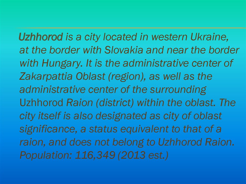 Uzhhorod is a city located in western Ukraine,at the border with Slovakia and near the border
