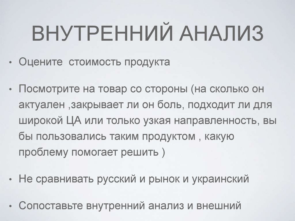 ВНУТРЕННИЙ АНАЛИЗОцените стоимость продукта