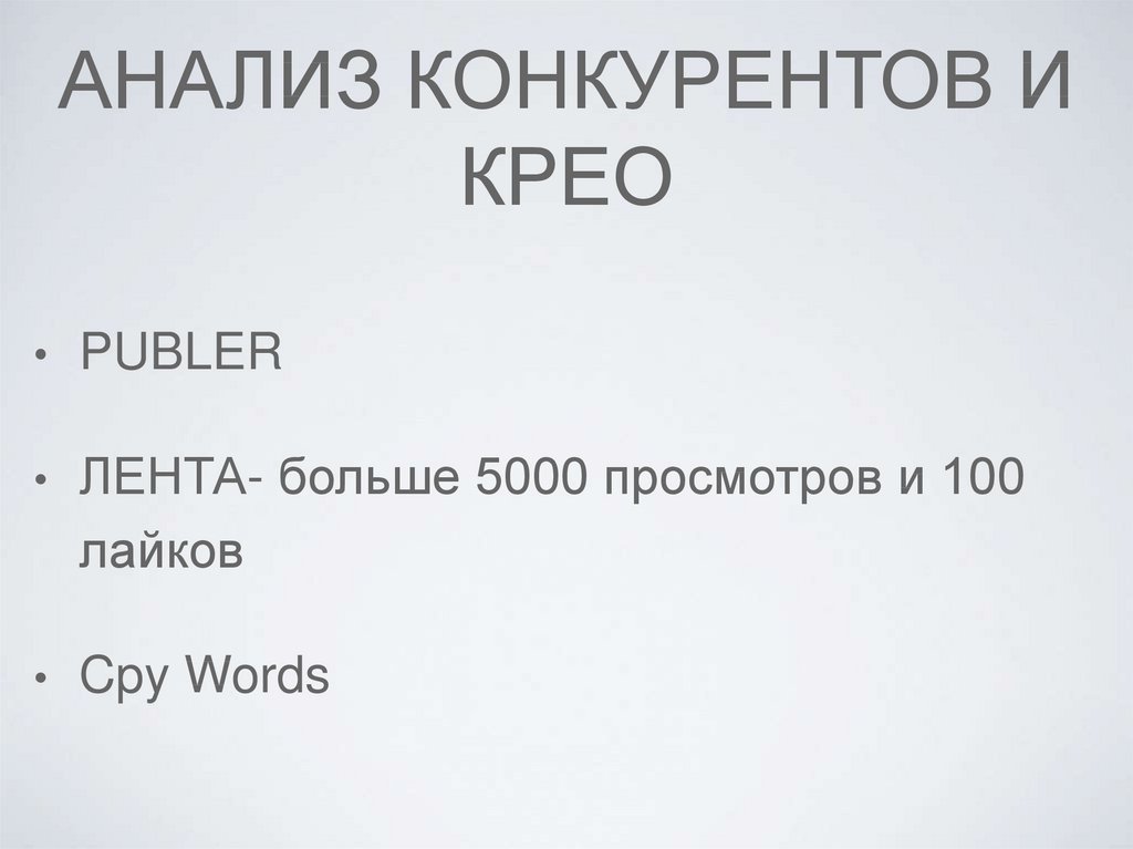 АНАЛИЗ КОНКУРЕНТОВ ИКРЕО