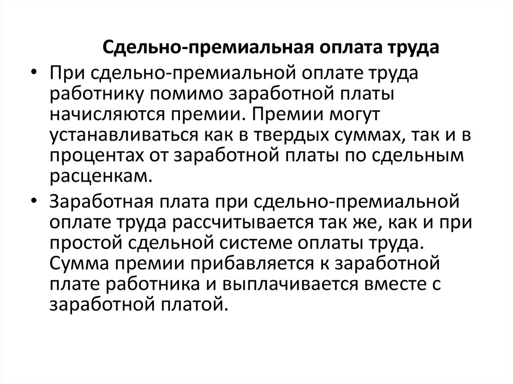 Сдельно-премиальная оплата труда• При сдельно-премиальной оплате труда