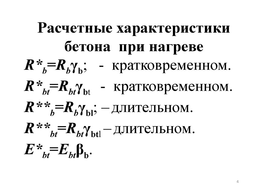 Расчетные характеристикибетона при нагреве