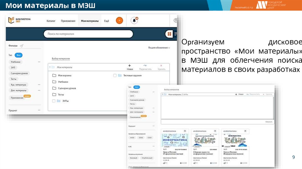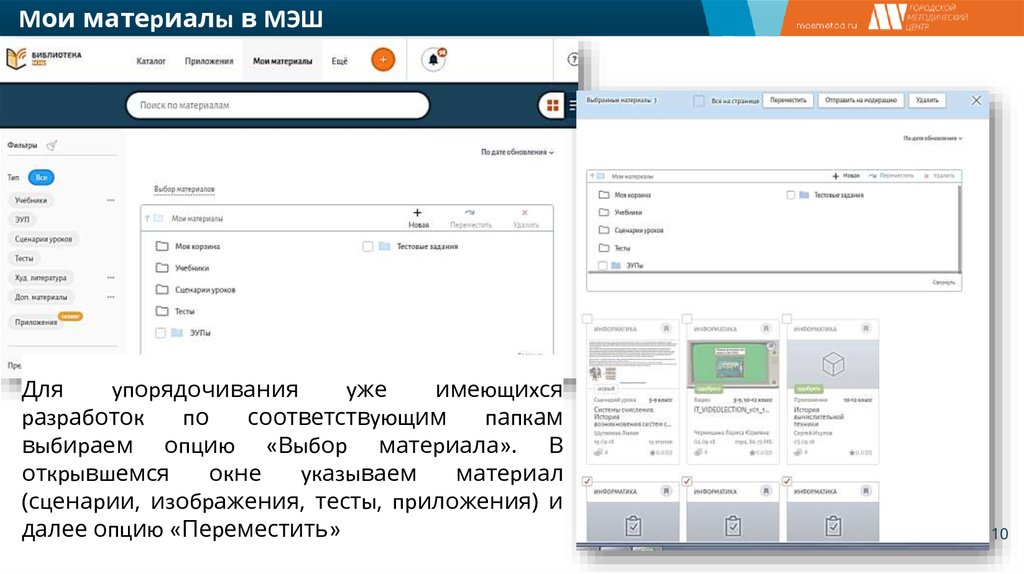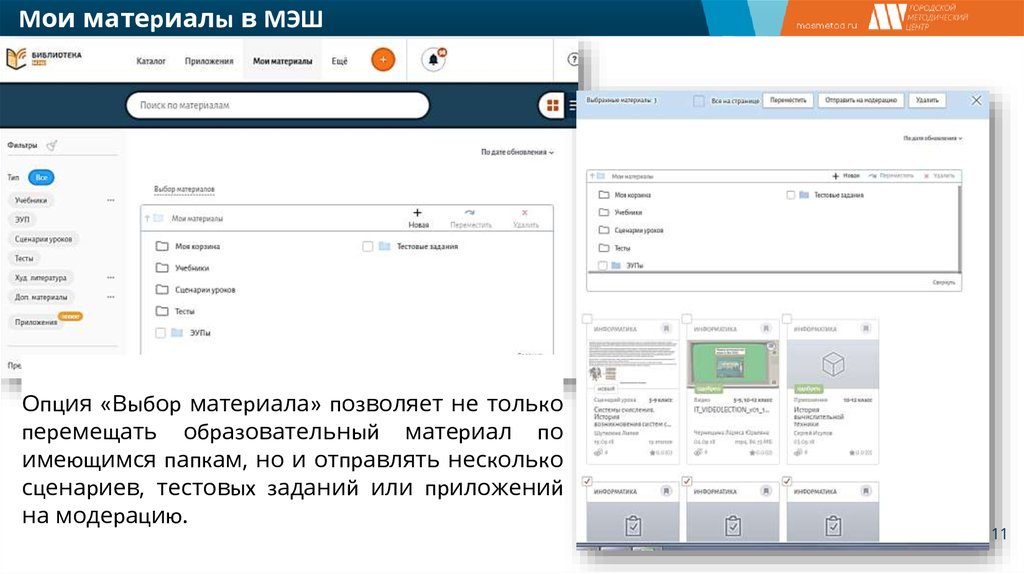 Мои материалы в МЭШОпция «Выбор материала» позволяет не только