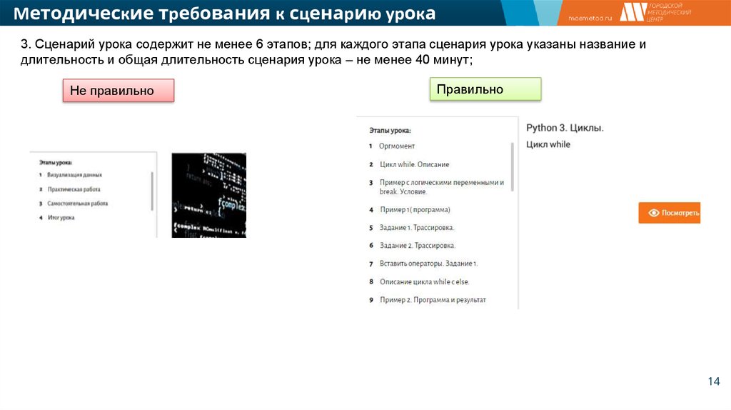 Методические требования к сценарию урока3. Сценарий урока содержит не менее 6 этапов; для каждого этапа сценария урока указаны название и