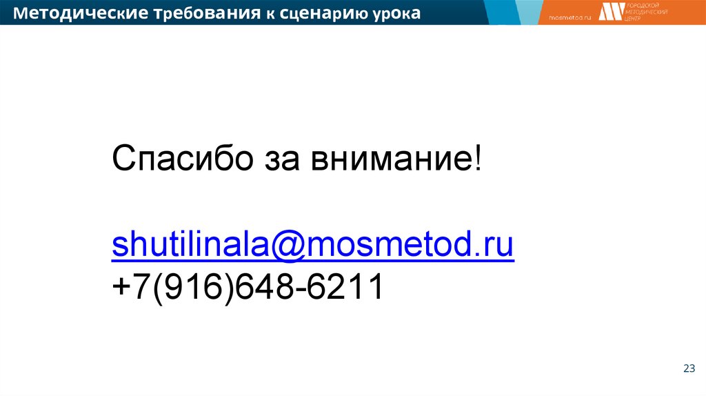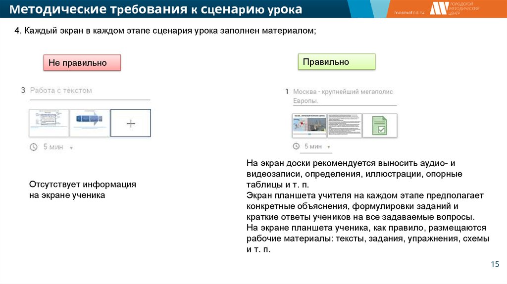 Методические требования к сценарию урока4. Каждый экран в каждом этапе сценария урока заполнен материалом;