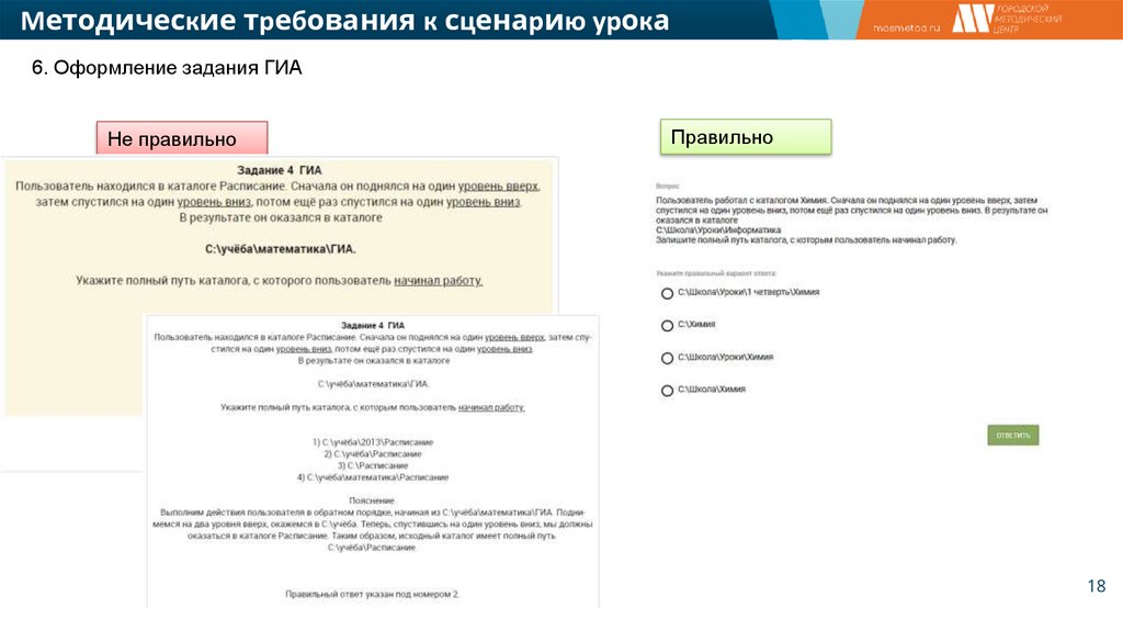 Методические требования к сценарию урока6. Оформление задания ГИА