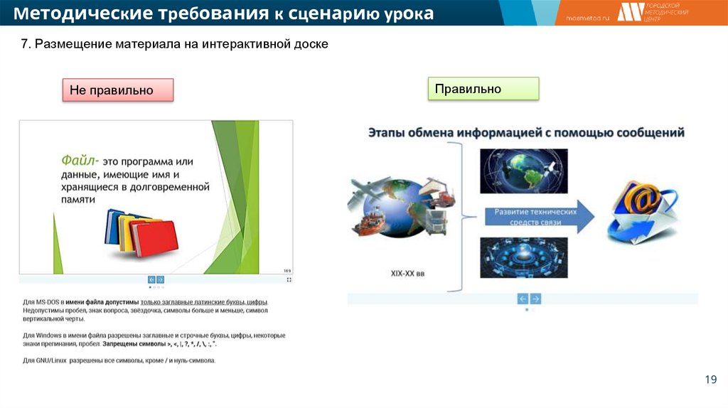 Методические требования к сценарию урока7. Размещение материала на интерактивной доске