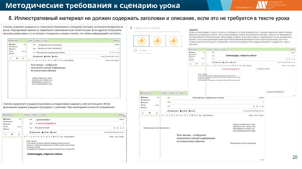 Методические требования к сценарию урока8. Иллюстративный материал не должен содержать заголовки и описание, если это не требуется в тексте урока