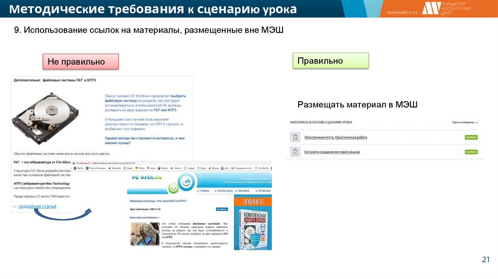Методические требования к сценарию урока9. Использование ссылок на материалы, размещенные вне МЭШ