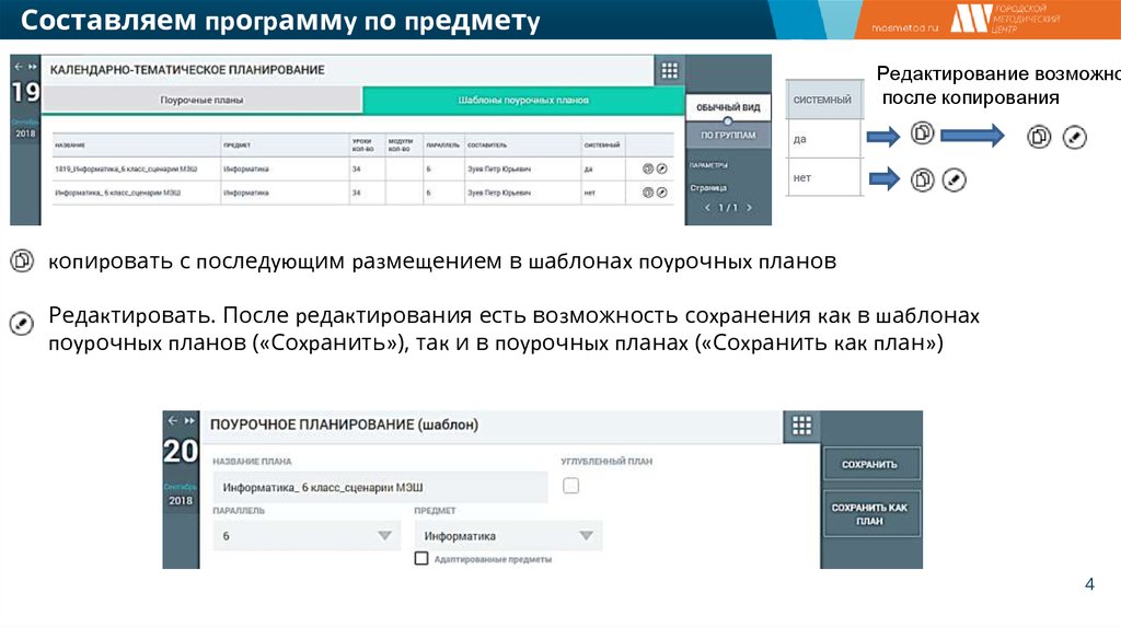 поурочных планов («Сохранить»), так и в поурочных планах («Сохранить как план»)
