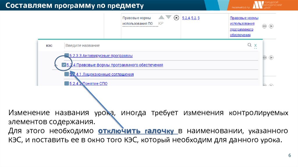 Составляем программу по предметуИзменение названия урока, иногда требует изменения контролируемых