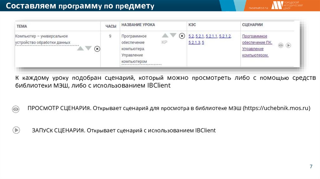 ПРОСМОТР СЦЕНАРИЯ. Открывает сценарий для просмотра в библиотеке МЭШ (https://uchebnik.mos.ru)