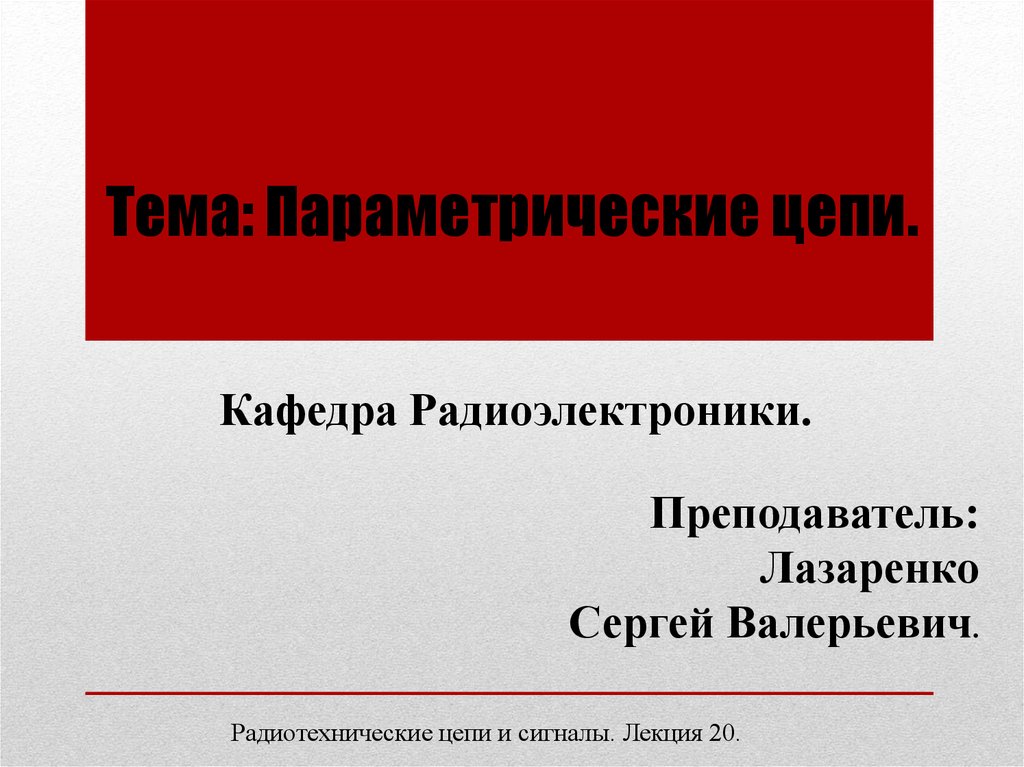 1. Общие сведения о параметрических цепях.Электрические цепи, в которых хотя бы один из параметров (R,L,C) изменяется