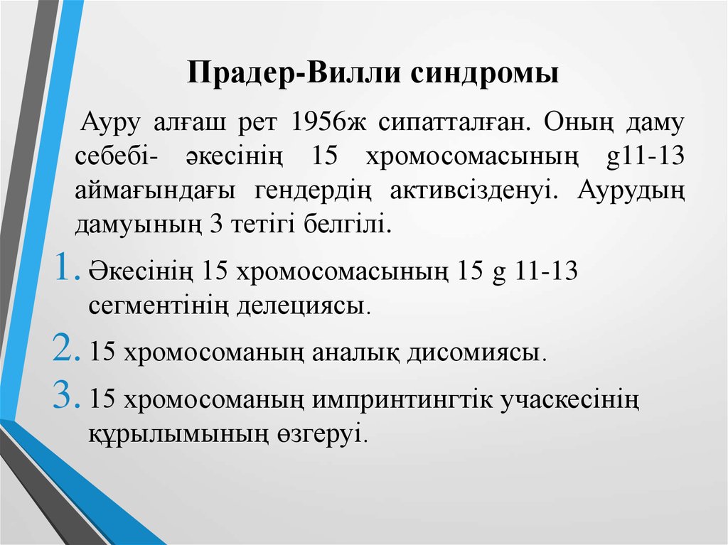 1. Әкесінің 15 хромосомасының 15 g 11-13