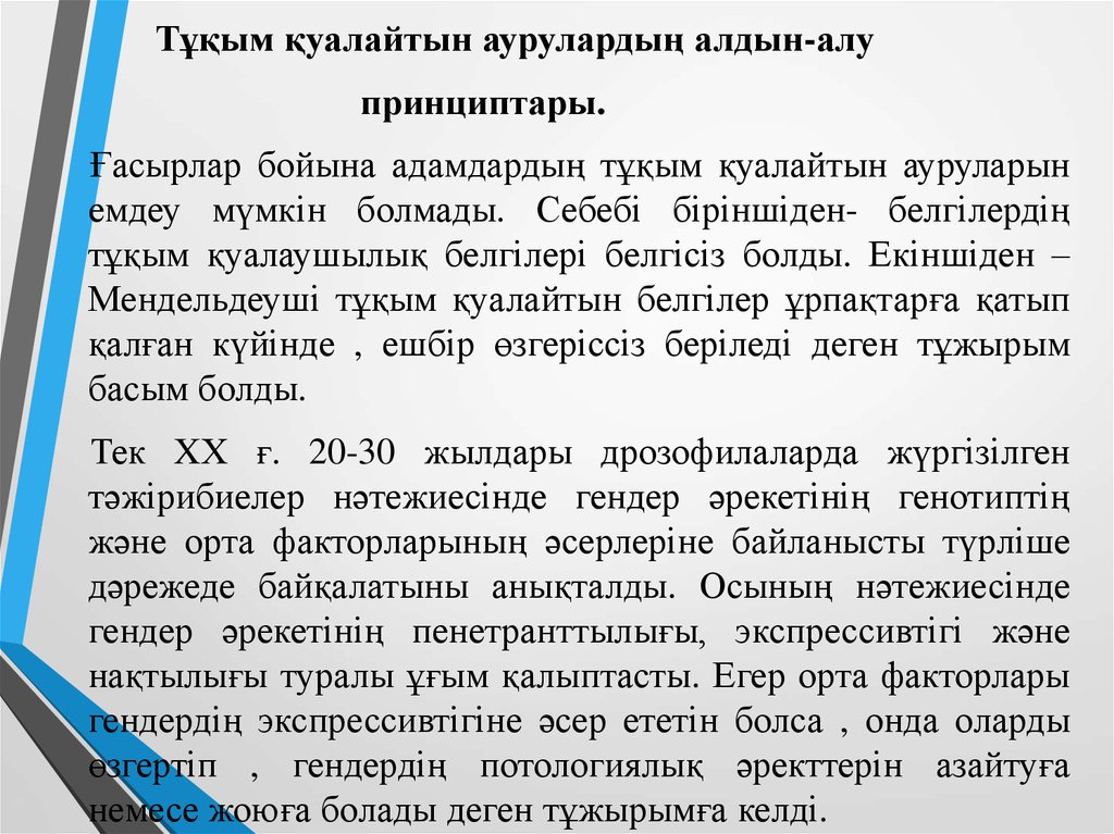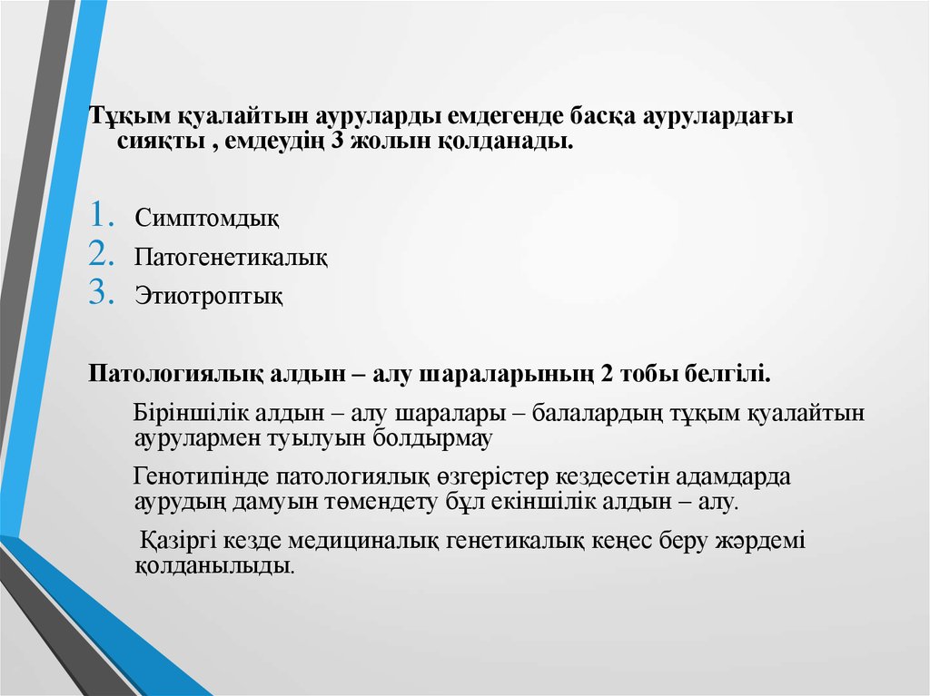 Тұқым қуалайтын аурулардың алдын-алупринциптары.