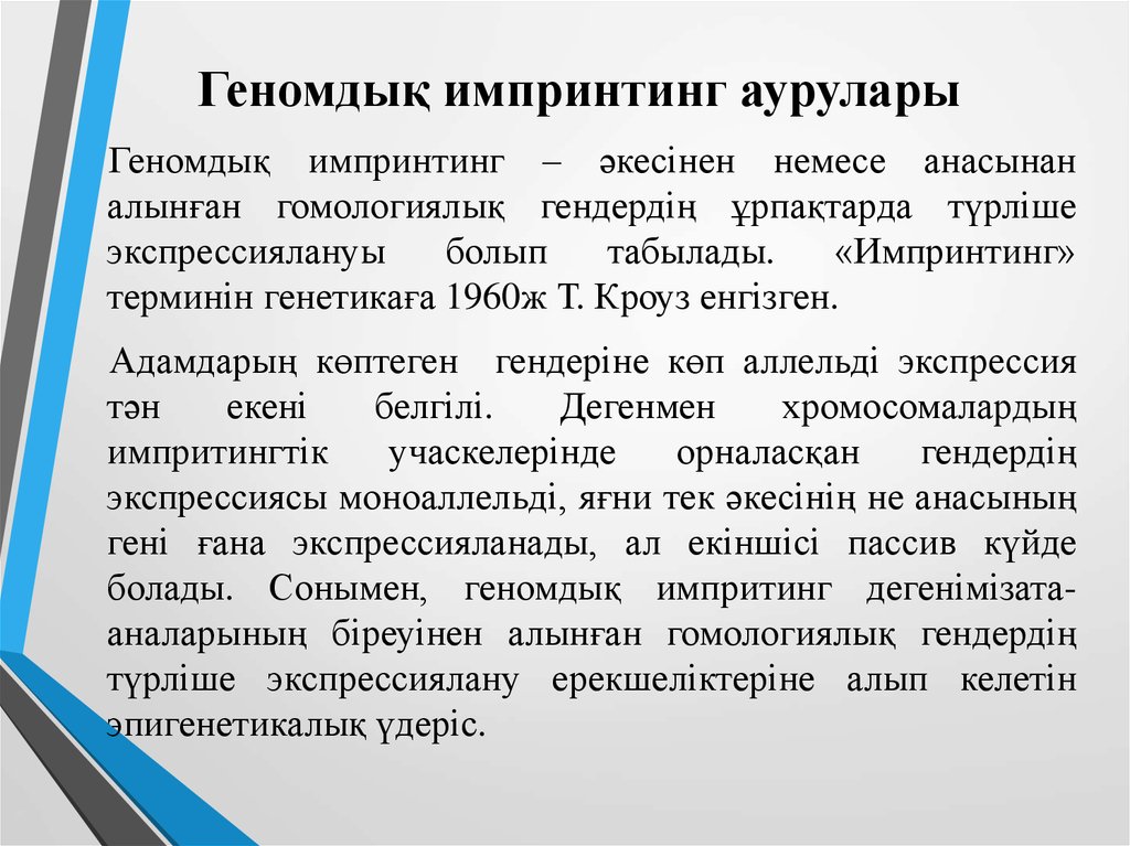 Геномдық импринтинг ауруларыГеномдық импринтинг – әкесінен немесе анасынан