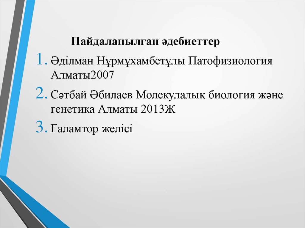 Пайдаланылған әдебиеттер1. Әділман Нұрмұхамбетұлы Патофизиология