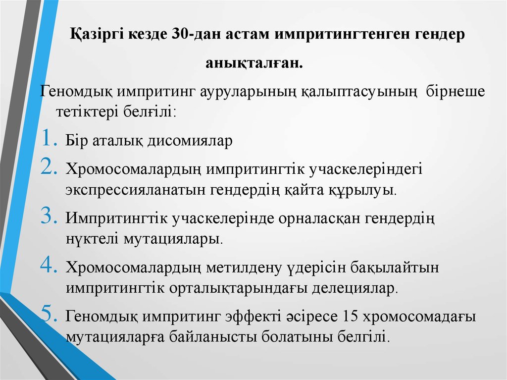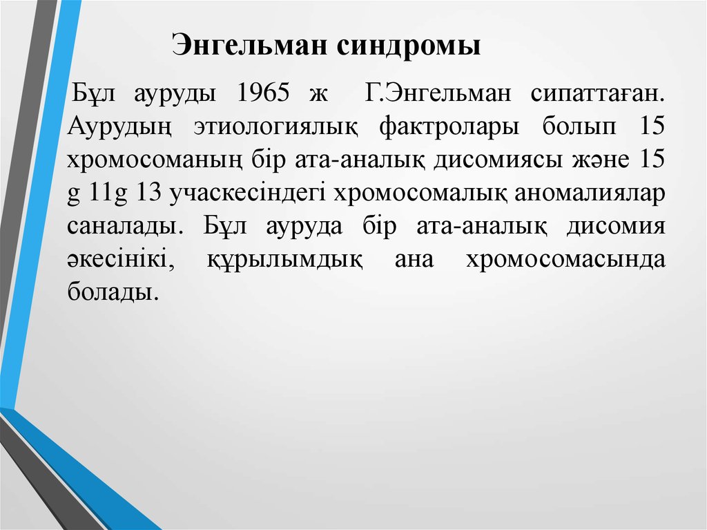 1.Геномдық импритинг аурулары2.Энгельман синдромы