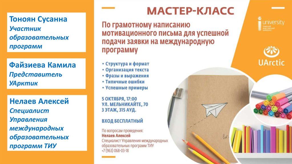 Мастер-класс по грамортному написанию мотивационного письма для успешной подачи заявки на международную программу