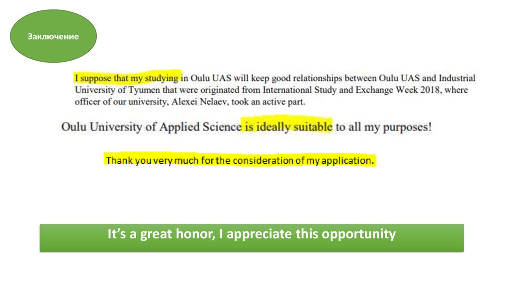 ЗаключениеIt’s a great honor, I appreciate this opportunity