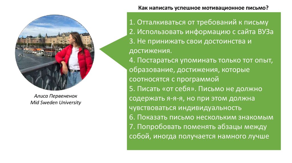 Как написать успешное мотивационное письмо?Алиса Первененок
