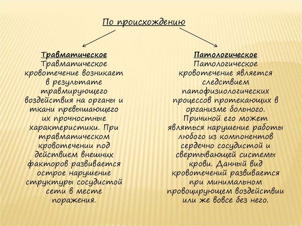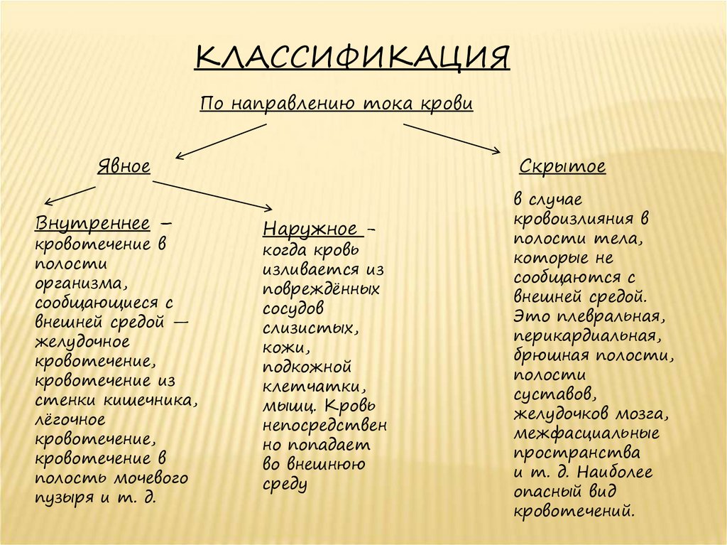 - Это потеря крови из кровеносной системы Кровь можетистекать из кровеносных сосудов внутрь организма или наружу,