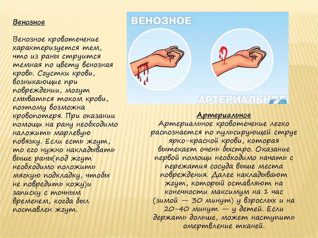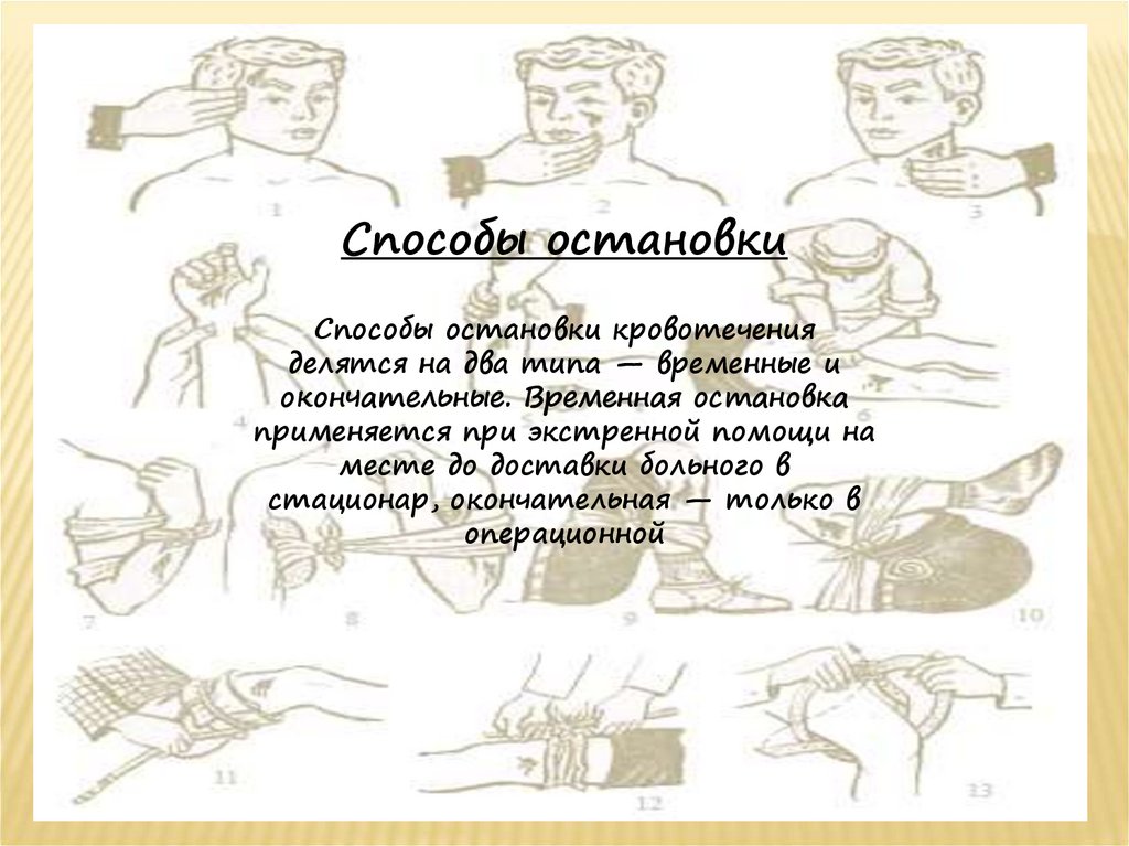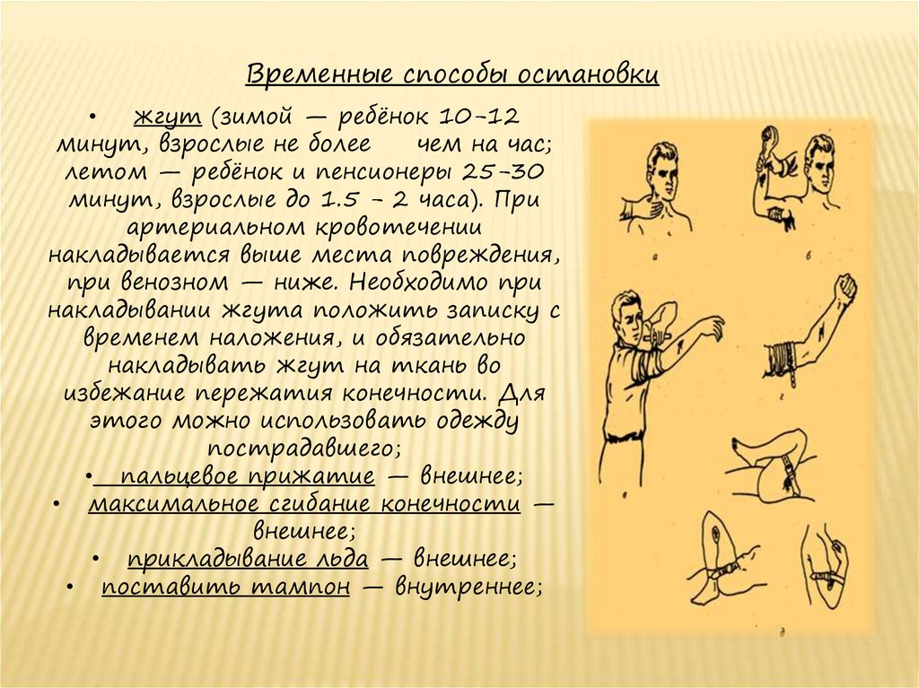 Временные способы остановкижгут (зимой — ребёнок 10-12