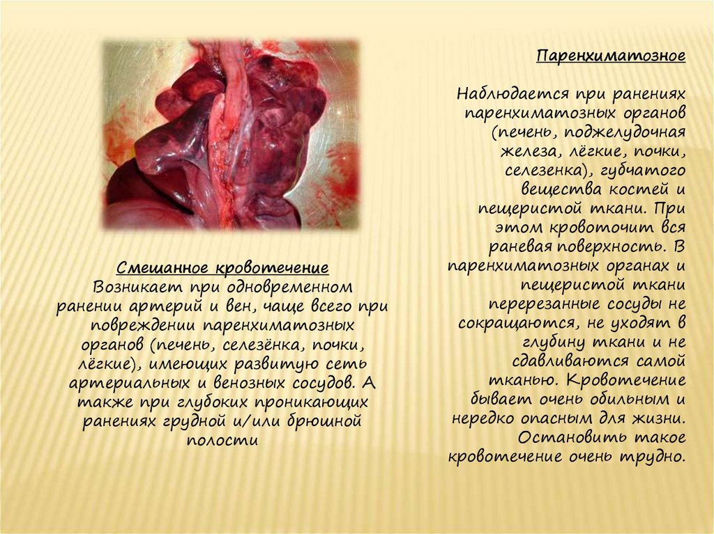 кровеносной стенки. Кровотечение плохо поддается остановке.