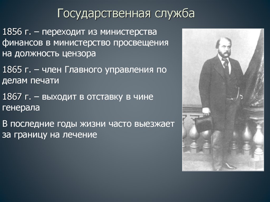 Государственная служба1856 г. – переходит из министерства