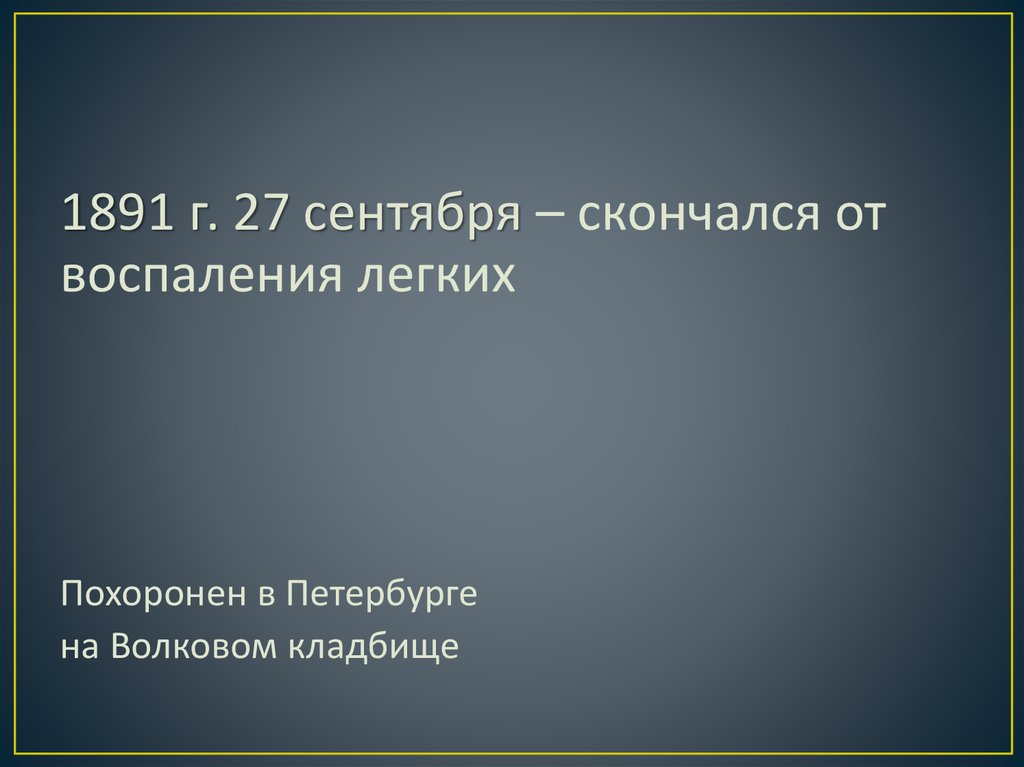 1891 г. 27 сентября – скончался отвоспаления легких