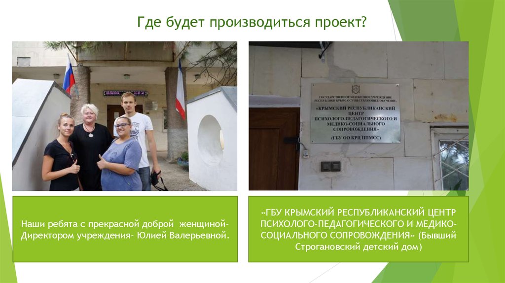 Где будет производиться проект?Наши ребята с прекрасной доброй женщинойДиректором учреждения- Юлией Валерьевной.