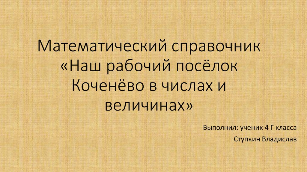 Математический справочник «Наш рабочий посёлок Коченёво в числах и величинах»